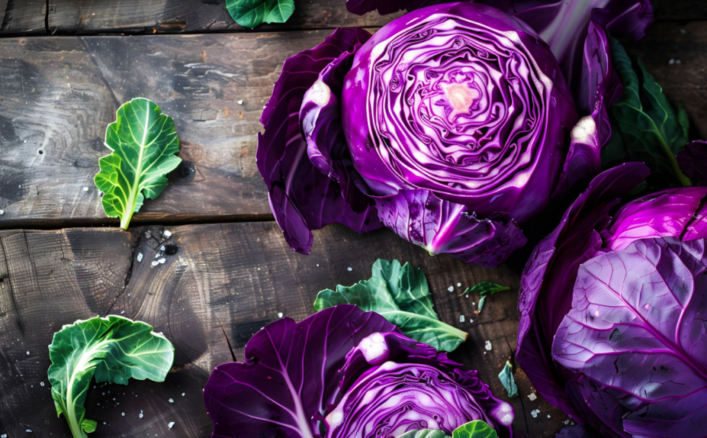 1. Lightly steam the purple cabbage just until tender but still vibrant, about 2 to 3 minutes. Remove from heat and let it breathe.